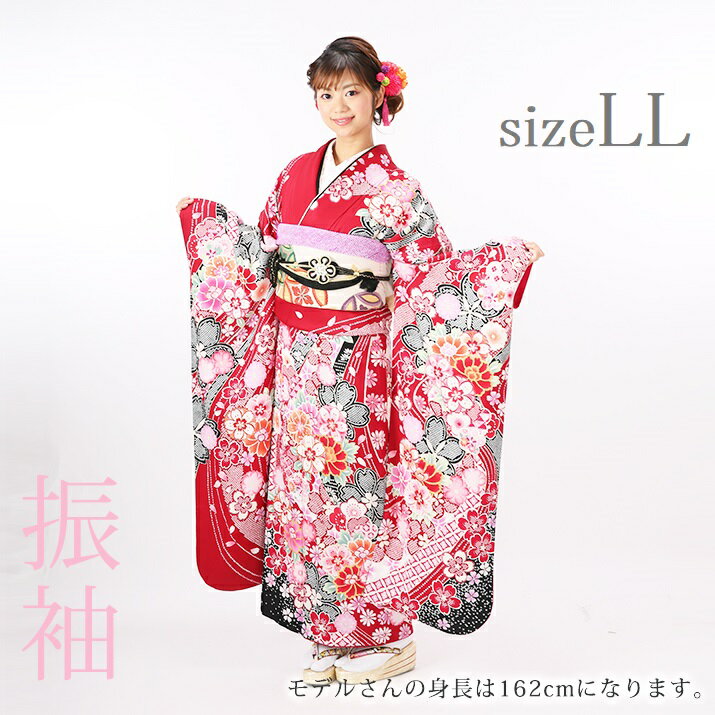 「スーパーセール半額 ★2025/12/04 20:00~2025/12/11 01:59★ 50%OFF」【レンタル】振袖レンタル19点フルセット【LLサイズ/赤 桜 高級 総柄総絞り】赤 桜 高級 総柄総絞り 着物 フルセット レンタル 貸衣装 成人式 結婚式 結納 和服 披露宴 ふりそで 送料無料