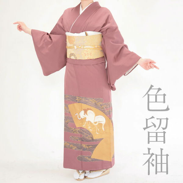 「スーパーセール半額 ★2025/12/04 20:00~2025/12/11 01:59★ 50%OFF」【レンタル】色留袖レンタル18点フルセット【フリーサイズ/あずき 鶴に波頭】足袋プレゼント 留袖 着物レンタル 貸衣装 女性和服 結婚式 着物 往復送料無料