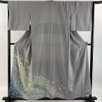 色留袖 身丈155.5cm 裄丈66.5cm M 袷 吉乃一廉 落款あり 桜 波 絞り 金彩 灰色 正絹 名品 中古