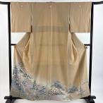 美品 色留袖 身丈160cm 裄丈63cm S 袷 風景 家屋 ぼかし 薄茶色 正絹 秀品 三つ紋 中古