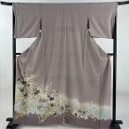 色留袖 身丈164.5cm 裄丈67cm M 袷 落款あり 草花 ぼかし 薄紫 正絹 名品 三つ紋 中古