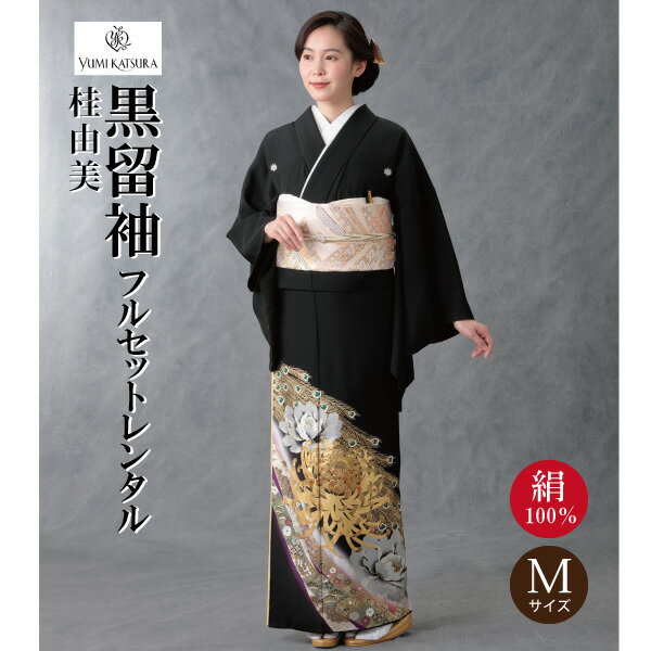 「スーパーセール半額 ★2025/12/04 20:00~2025/12/11 01:59★ 50%OFF」【レンタル】桂由美 黒留袖レンタル18点フルセット【足袋プレゼント】Mサイズ 着物レンタル 貸衣装 女性和服 とめそで 留袖 ブランド 結婚式 礼装