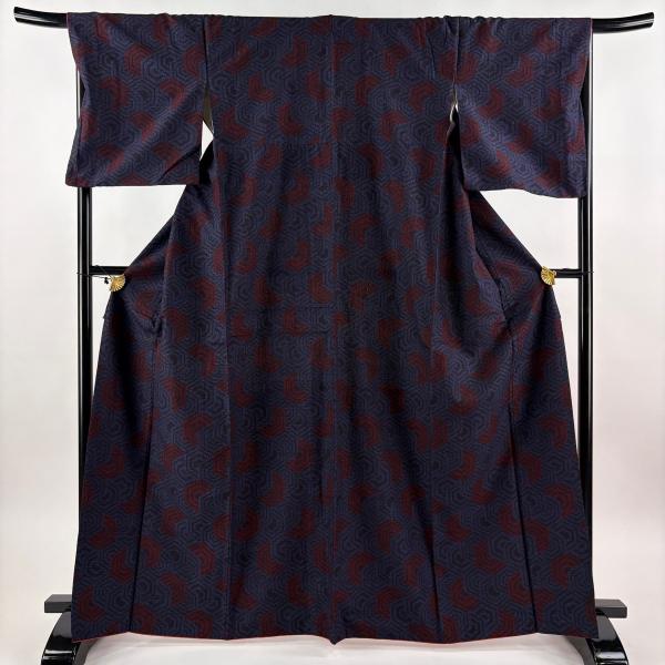 紬 身丈165cm 裄丈68cm L 袷 やまと 証紙あり 子持ち亀甲 紺色 正絹 名品 中古