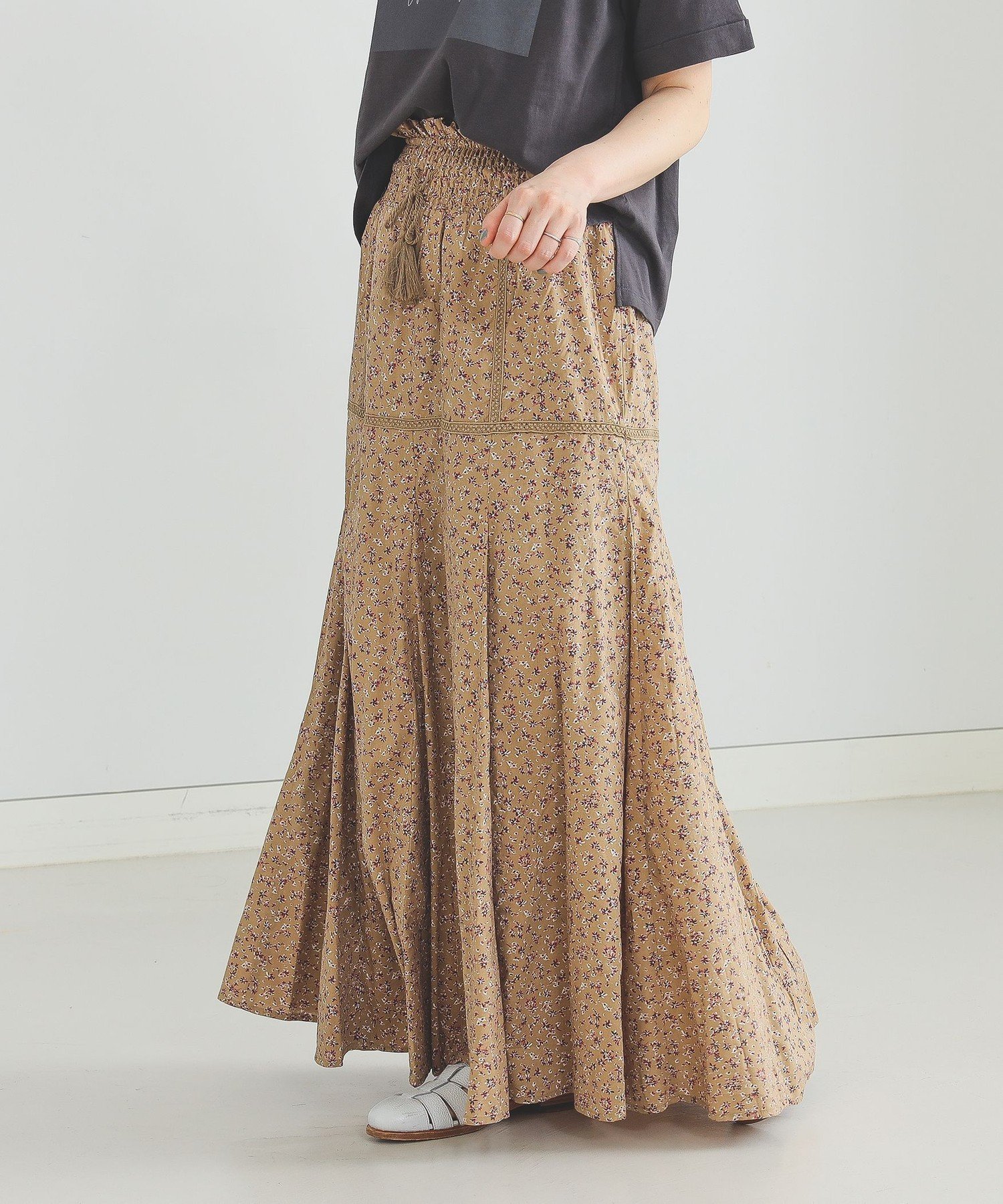 【SALE/70%OFF】BEAMS HEART WOMEN アシンメトリー切り替え フレアスカート ビームス アウトレット スカート ロング・マキシスカート ブラウン ベージュ グリーン