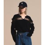 ニット セーター 「1/29再値下げ」透け切替 ベロア トップス レディース