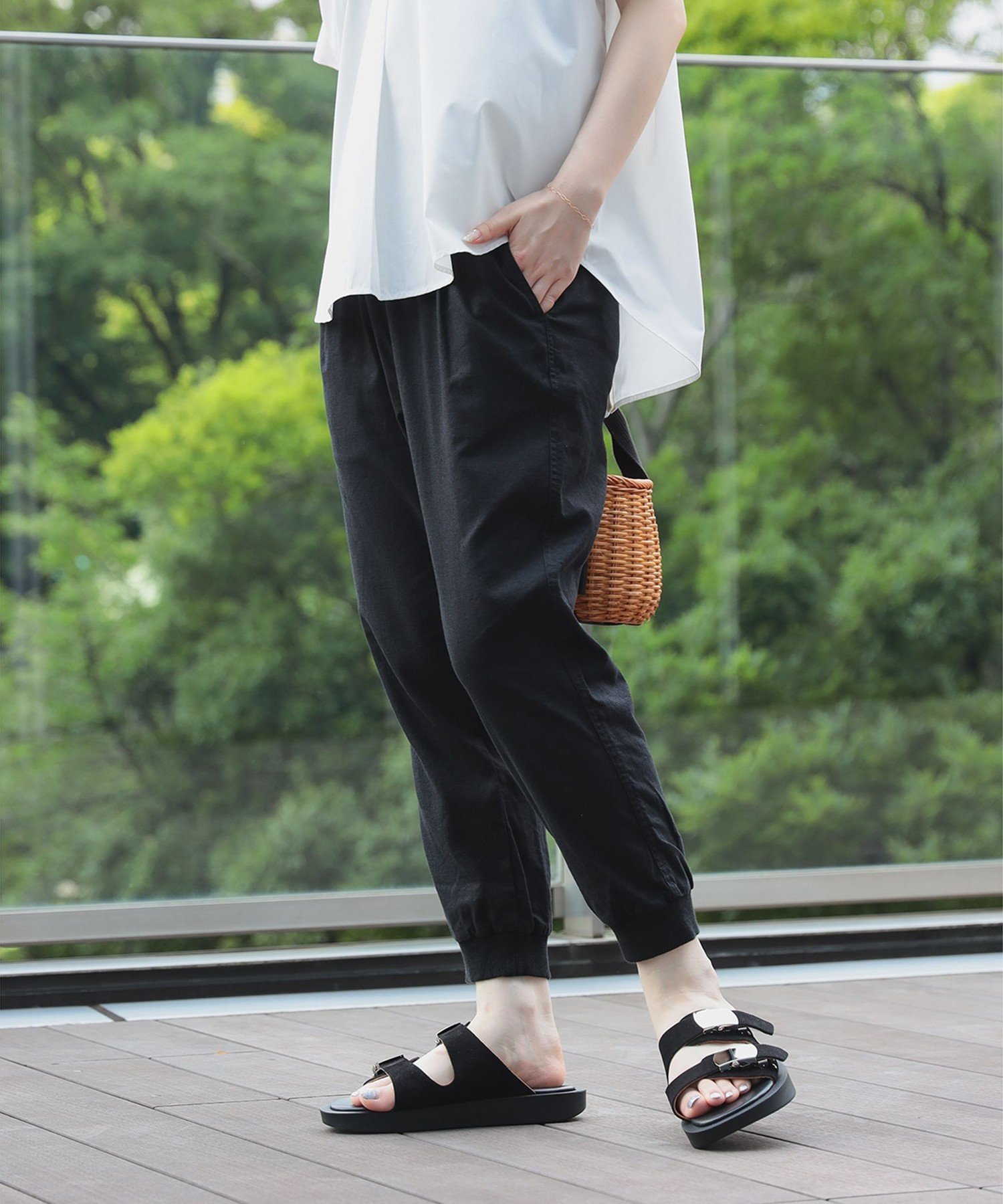 【SALE/50%OFF】BEAMS HEART WOMEN 麻混ドライタッチ ジョグパンツ(S~M・洗濯可) ビームス アウトレット パンツ その他のパンツ グリーン ベージュ ブラック ブルー
