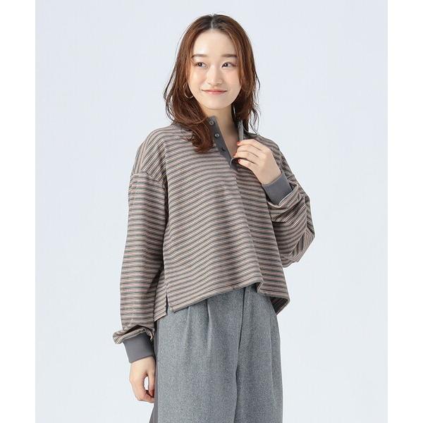 tシャツ 起毛 ボーダー ポロシャツ レディース