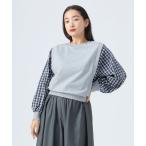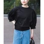 tシャツ ピンタックスリーブ 異素材プルオーバー レディース