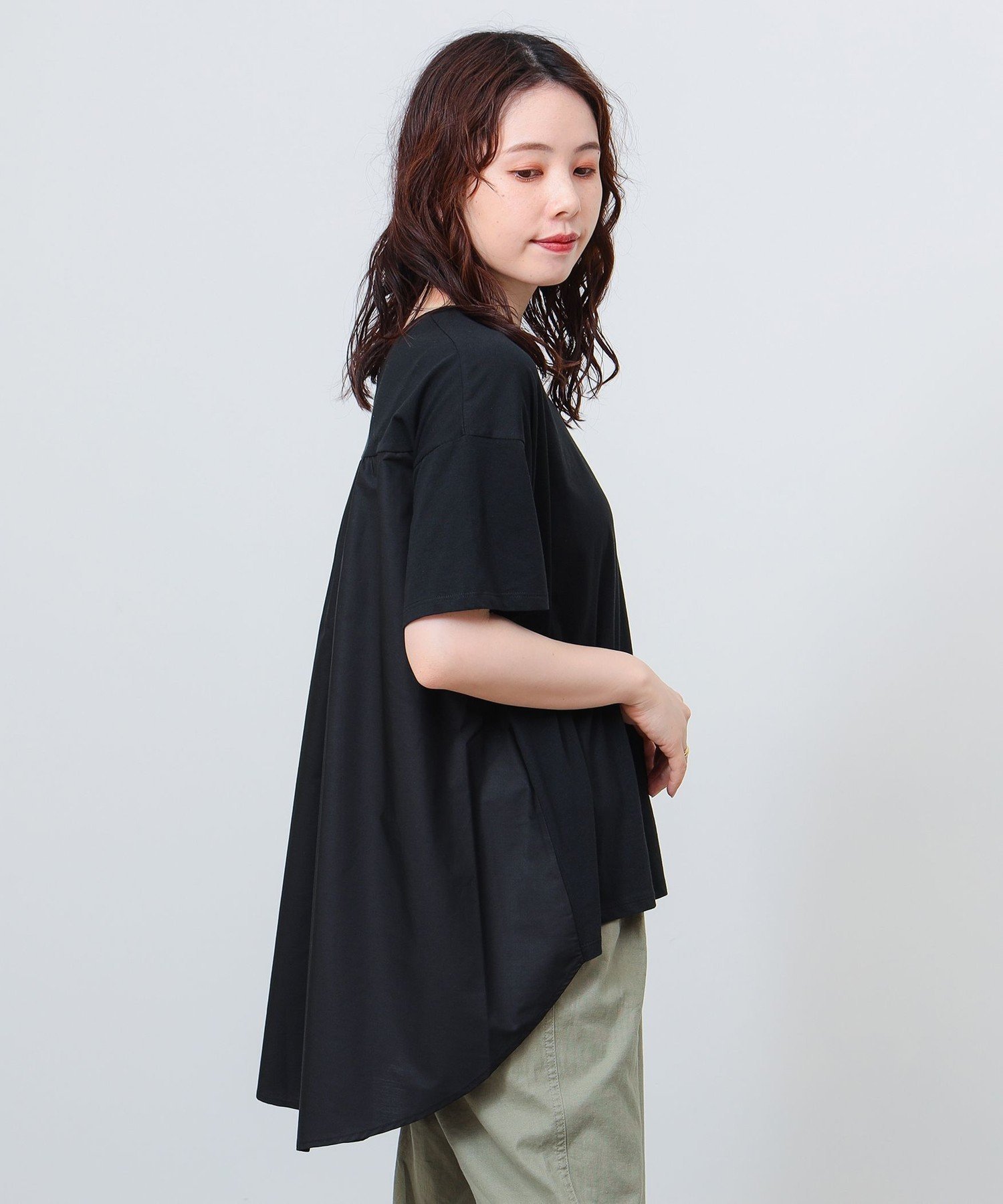 【SALE/50%OFF】BEAMS HEART WOMEN 【洗濯機洗い可】異素材 ドロスト プルオーバー 25SS 半袖 トップス ドローコード ビームス ハート トップス カットソー・Tシャツ グリーン ブラック ホワイト