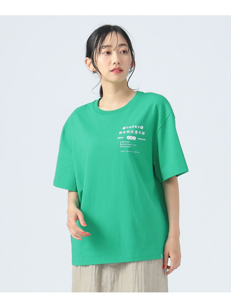 【SALE/70%OFF】【EXCLUSIVE】ハッピーハンバーグ チャイナ Tシャツ BEAMS HEART WOMEN ビームス アウトレット トップス カットソー・Tシャツ グリーン ホワイト【RBA_E】[Rakuten Fashion]