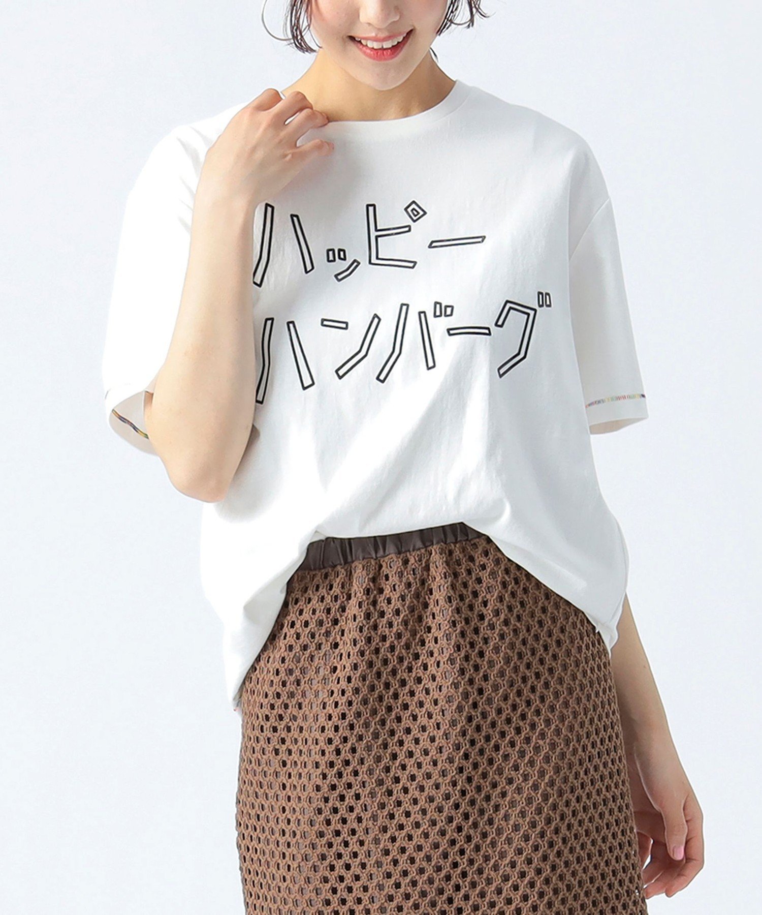 【SALE/70%OFF】BEAMS HEART WOMEN 【EXCLUSIVE】ハッピーハンバーグ カレッジ Tシャツ ビームス アウトレット トップス カットソー・Tシャツ ホワイト ネイビー