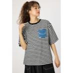 tシャツ ぐるり360°どこからだって映えちゃう。オーガニックコットン100%らくがき風刺繍 無地&ボーダー柄半袖Tシャツ レディース