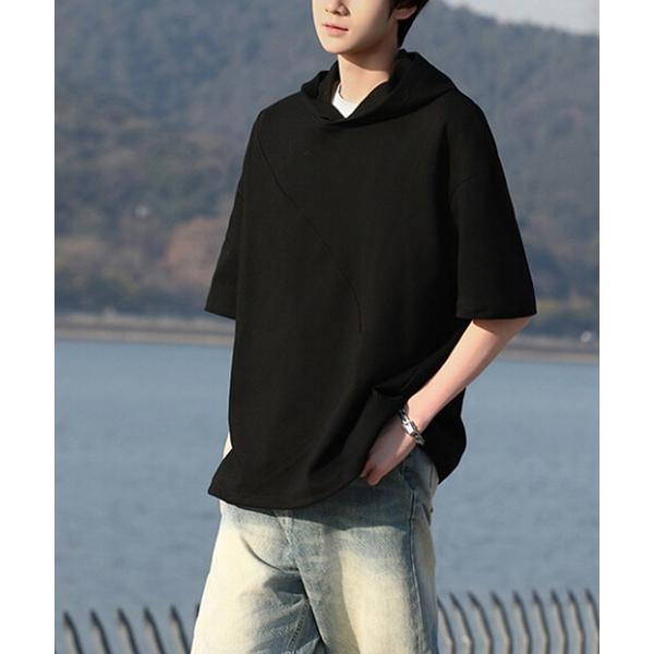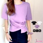 Tシャツ アシンメトリー 2way トップス ラウンドネック 半袖 春 夏 シンプル カジュアル 韓国ファッション ブラック ホワイト パープル M L XL JOCOSA 7185