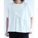 tシャツ 天竺×ブロードフリルアシンメトリープルオーバー レディース
