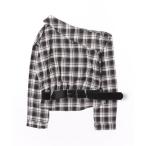 tシャツ チェック柄 アシンメトリー オフショル 長袖 プルオーバー レディース