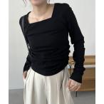 tシャツ ●オフショル風シャーリングデザインプルオーバー レディース