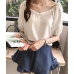 tシャツ パフスリーブ五分丈トップス レディース
