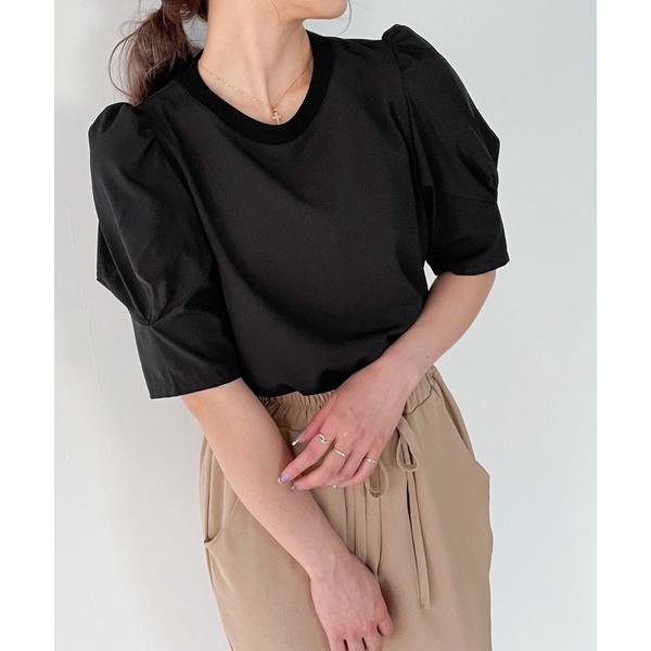 tシャツ 袖プリーツ5分袖パフスリーブTシャツ レディース