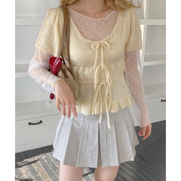 tシャツ リボンパフスリーブ半袖ニット レディース