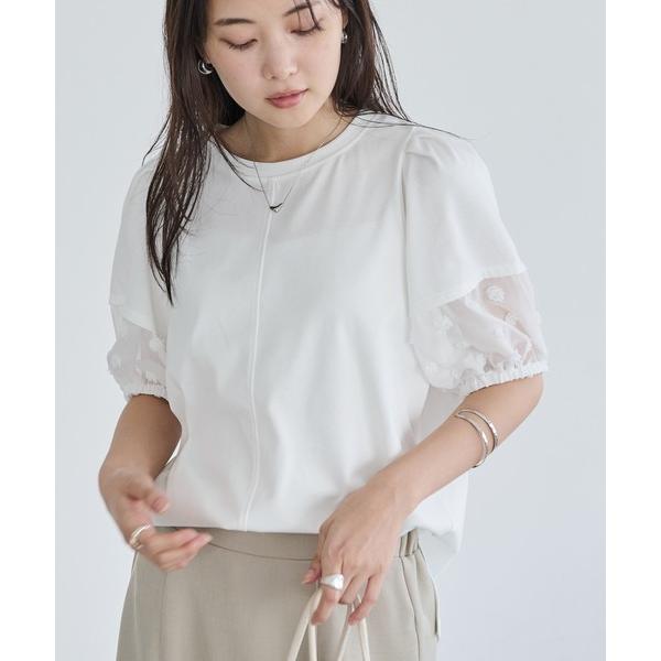 tシャツ フロッキードットパフスリーブオーガンジーTシャツ レディース
