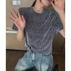 tシャツ ラインストーン付きラメトップス レディース