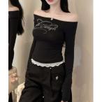 tシャツ WEGO/ラインストーンオフショル裾レースタイトロンT/トップス レディース