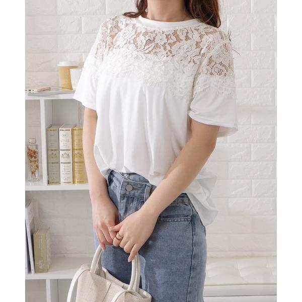 tシャツ レース切替半袖Tシャツ レディース