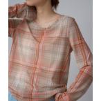 tシャツ チュールチェック柄 クルーネックシアートップス / 12分袖 レディース