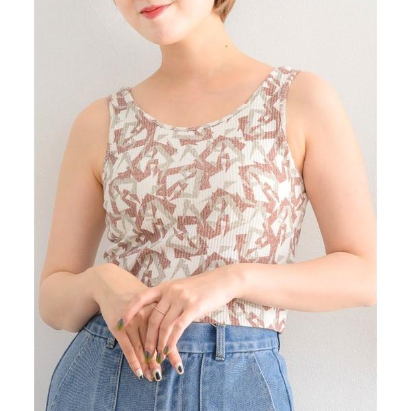 tシャツ 柄テレコカップ付タンク レディース