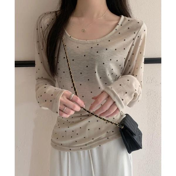 tシャツ ドット柄長袖トップス レディース