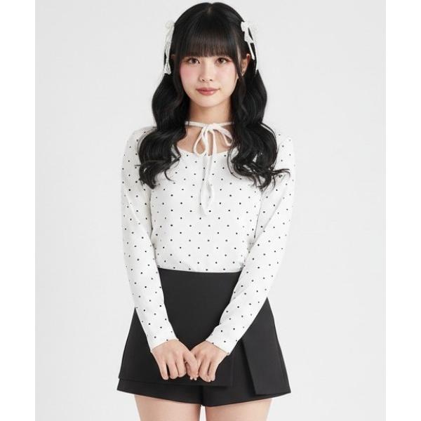 tシャツ ドット柄リボンタイロングスリーブトップス「DIP IN CHOCOLATE」 レディース