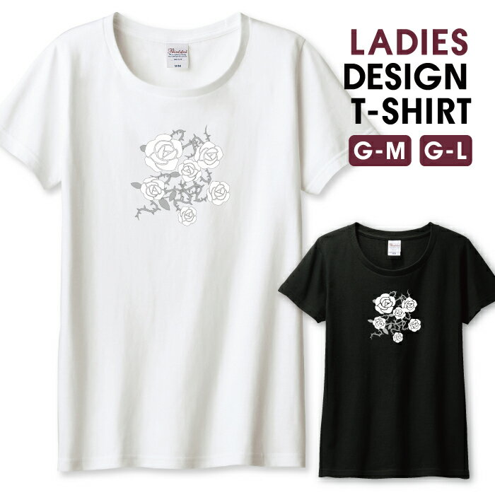 \半額 50%OFFクーポン/Tシャツ レディース ガールズ バラ 薔薇 ばら 花柄 フラワー ホワイト かわいいデザイン サイズ M L 半袖 綿 100% コットン 人気 レディースサイズ 女性 白Tシャツ 黒Tシャツ ホワイト ブラック よれない 透けない 長持ち プリントtシャツ