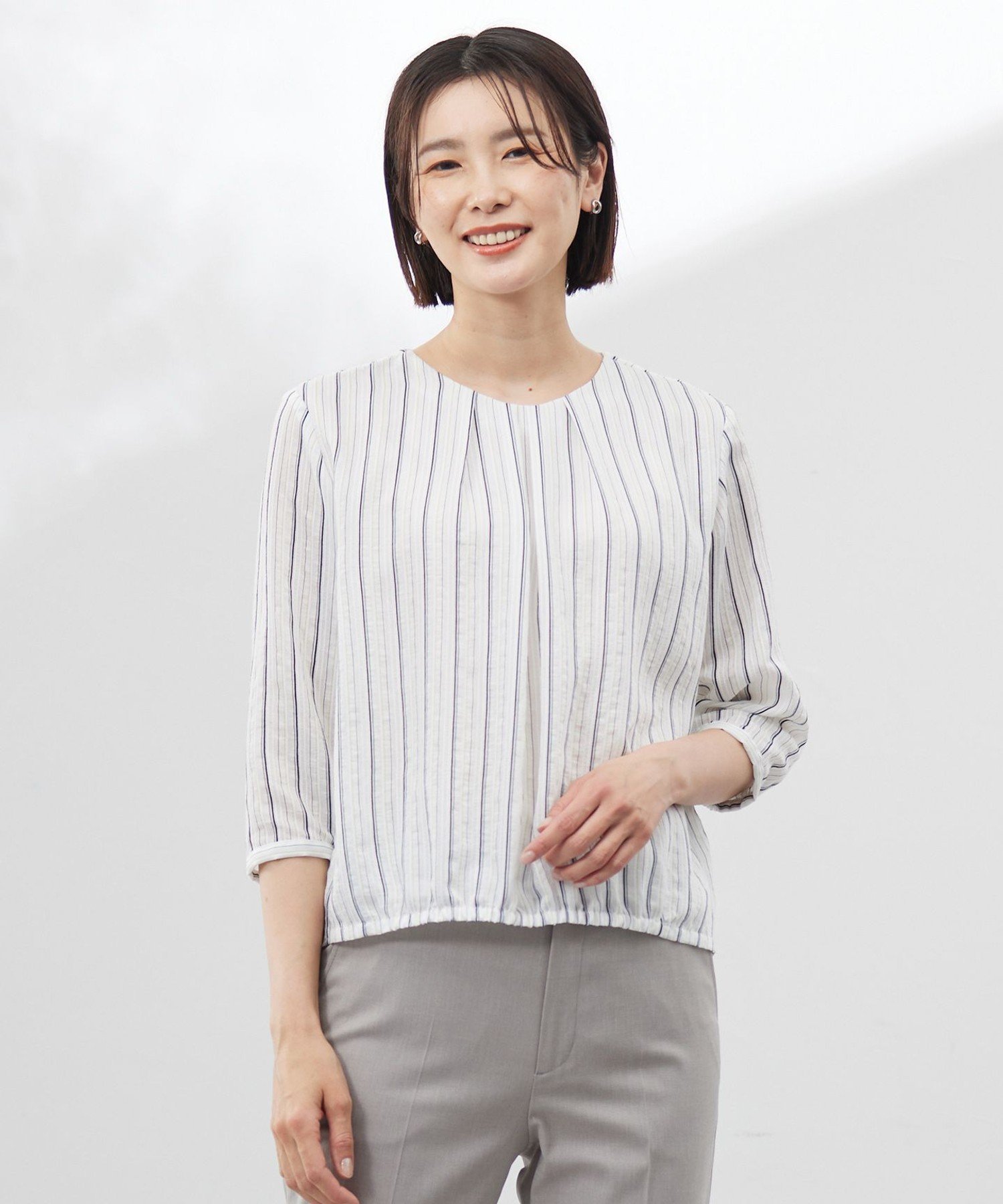 NEWYORKER レディース トップス ニューヨーカー NEWYORKER WOMENNEWYORKER(ニューヨーカー)【吸水速乾】プレーティング天竺 バンドカラーピンタックカットソークラシカルな雰囲気漂う、カッ...