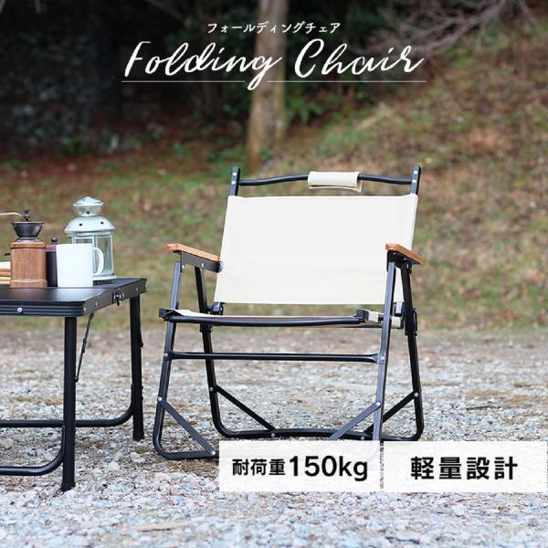 フォールディングチェア 折りたたみ 軽量 木製手すり 収納袋付 耐荷重150kg ローチェア キャンプ アウトドアチェア ベージュ WEIMALL
