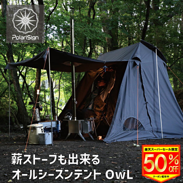 【50%OFFクーポン配布中】PolariSign (ポラリスサイン) 台形ソロテントOwL(オウル) インナーテント付属 煙突口標準装備 ハイバックチェアでも余裕の天井高 全周スカート ソロキャンプ 難燃 ポリコットン製 TCソロテント 焚火 薪ストーブ 秋キャンプ 冬キャンプ 冬 煙突穴