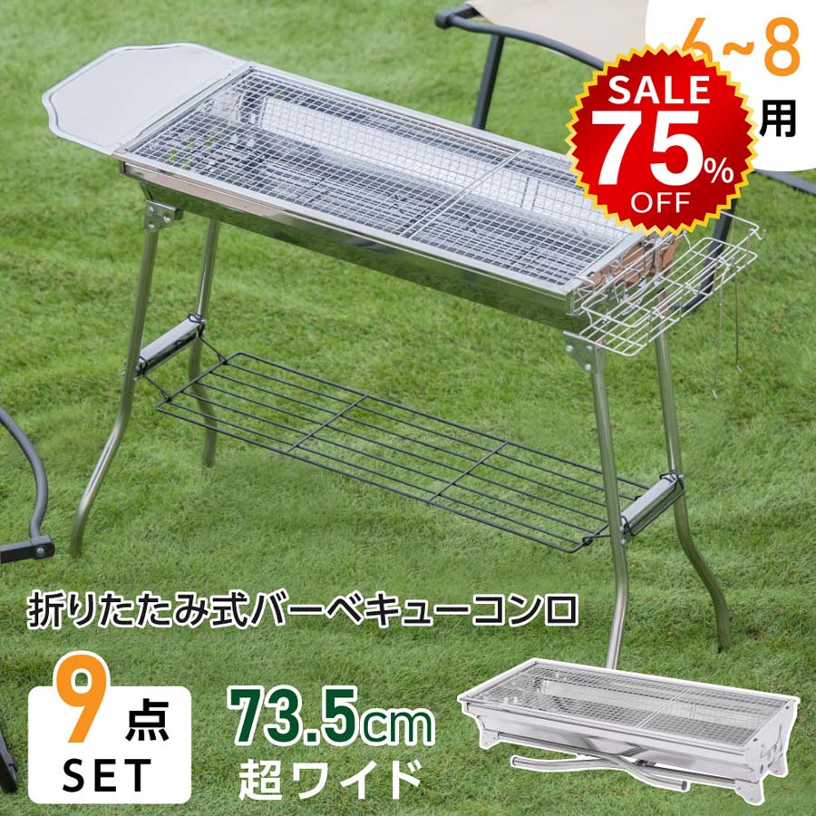 【75%OFFクーポン利用で3102円】South Light バーベキューコンロ 大型 折りたたみ式 幅 73.5cm コンパクト 軽量 持ち運び 便利 大人数 BBQコンロ バーベキューグリル BBQグリル コンロ グリル キャンプ用品 アウトドア レジャー 焼肉 料理 d-00010