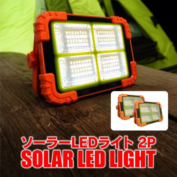 LED ランタン ソーラー充電 ライト 2個セット 投光器 USB 充電式 太陽光 作業灯 防水 コンパクト 屋外 キャンプ アウトドア BBQ 災害 停電 値下