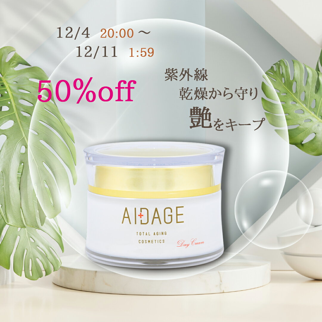 【50%OFF スーパーSALE期間】アイダージュ デイクリーム 昼用クリーム 日中用クリーム 50mL 【日本製】 SPF15(UVA/UVB 予防)配合 コンブチャ 肌老化の原因となるタンパク質の硬化を防ぐ ツヤ 透明感 しみ くすみ 乾燥 年齢肌 敏感肌 抗酸化力 保湿 浸透性