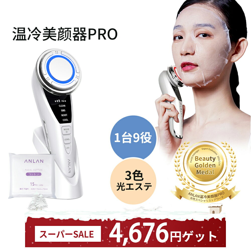 【スーパーSALE限定68%OFF】「楽天一位!」美顔器 リフトアップ EMS ほうれい線 小顔 たるみ改善 イオン導入 1台9役 温冷ケア 光エステ 3色LED 肌ケア 敏感肌対応 多機能美顔器 フェイスケア 温冷美顔器PRO ANLAN プレゼント