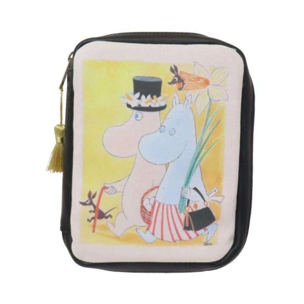 コスメポーチ レザー×コットン マルチポーチ ムーミン 北欧 パパママ ブラック ワタナベ 小物入れ キャラクター