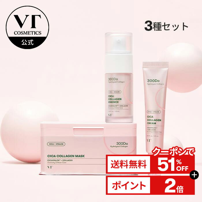\【24時間限定★】クーポンで51%OFF+送料無料/【VT公式】【 VT シカ コラーゲン 3種 セット 】 保湿 クリーム フェイスクリーム 美容液 セラム シートマスク フェイス パック しっとり 弾力 エイジングケア 敏感肌 乾燥肌 低刺激 スキンケア エイジングケア 韓国