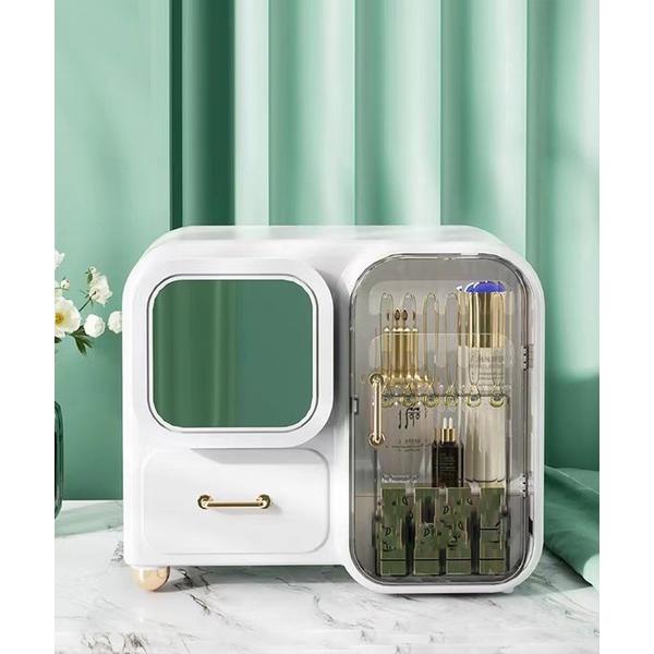 収納 大容量化粧品収納ケース 天板防塵鏡・引き出し付き北欧風
