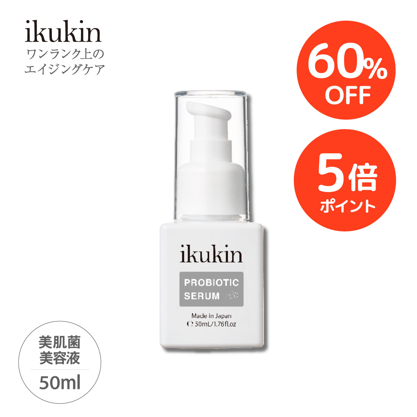 【SALE期間 60%OFF+P5倍】【公式】 イクキン プロバイオティックセラム 50mL [美容液]ikukin 濃厚美肌菌美容液 ハリ ツヤ くすみ 乾燥 敏感肌 低刺激 防腐剤フリー エタノールフリー 鉱物油フリー アレルギーテスト済