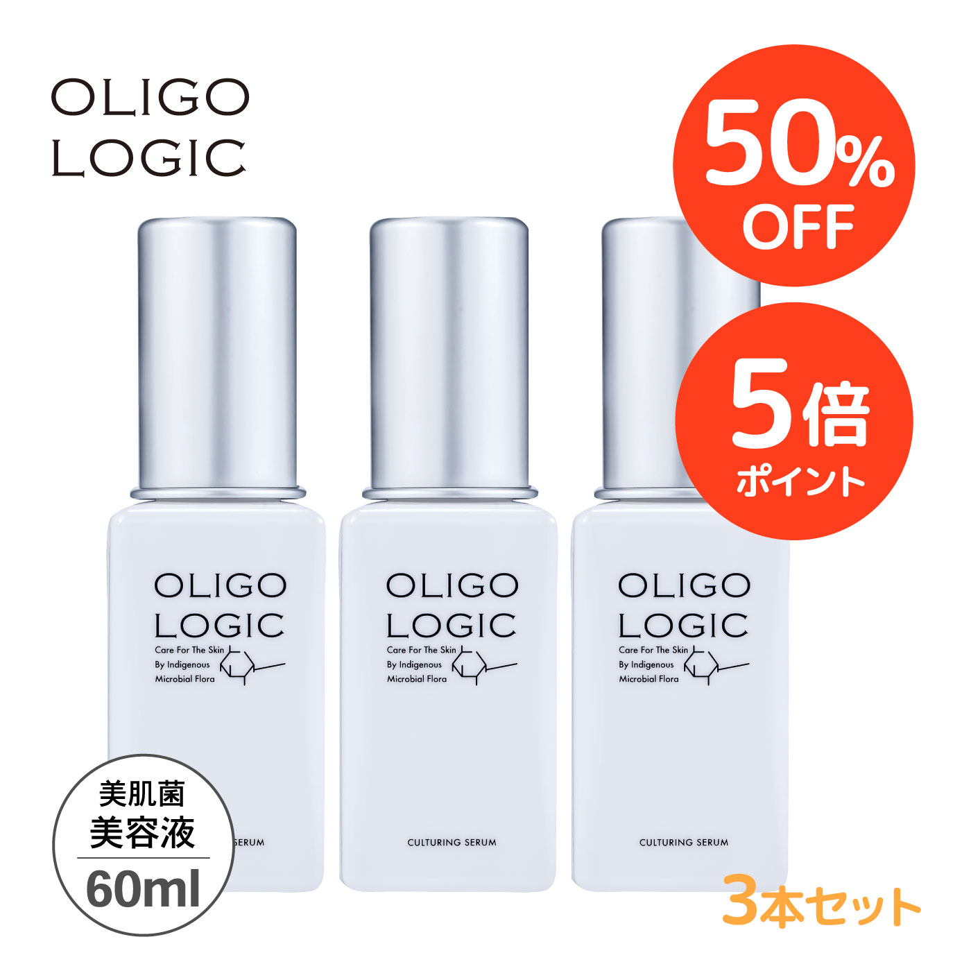 【SALE期間 50%OFF+P5倍】【3本セット/公式】 オリゴロジックカルチャリングセラム 60m [美容液] エイジングケア 保湿 基礎化粧品 美肌菌 ハリ ツヤ くすみ 敏感肌 低刺激 無添加 アレルギーテスト済 界面活性剤フリー