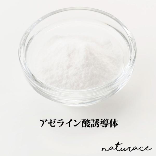 アゼライン酸誘導体について主成分:アゼライン酸誘導体(アゼロイルジグリシンK)100%・無添加形状:白い粉末香り:ほんのり原料の香りあり使用量全量の0.5%〜5%100gの化粧品に5g...