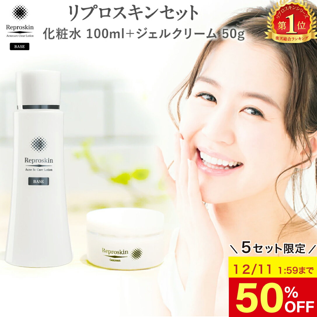 【5セット限定 50%OFF】【公式】 ニキビ跡 ニキビケア 植物幹細胞 エキス配合 クリーム 無添加 医薬部外品 薬用 化粧水 セット リプロスキン ローション 100mL ジェルクリーム 50g 跡 メンズ レディース 高保湿 クレーター セラミド 乾燥肌 プレゼント