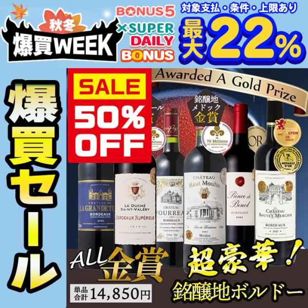 50%OFFセール ワイン ワインセット 銘醸 偉大なメドック入り ワイン セット 全て金賞受賞 ボルドーワイン 6本セット 1008 爆買