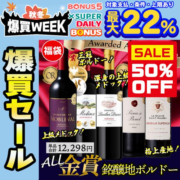 50%OFFセール ワイン ワインセット 全て金賞 渾身のボルドーワイン 赤5本セット ボルドーワイン 金賞 フランス 赤ワインセット 1008 爆買