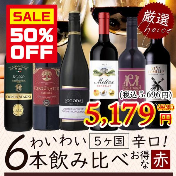 ゲリラセール ワイン ワインセット お買得ショップセレクトワイン お得すぎる赤ワイン6本セット 5か国飲み比べ 赤ワインセット 辛口 爆買 EV