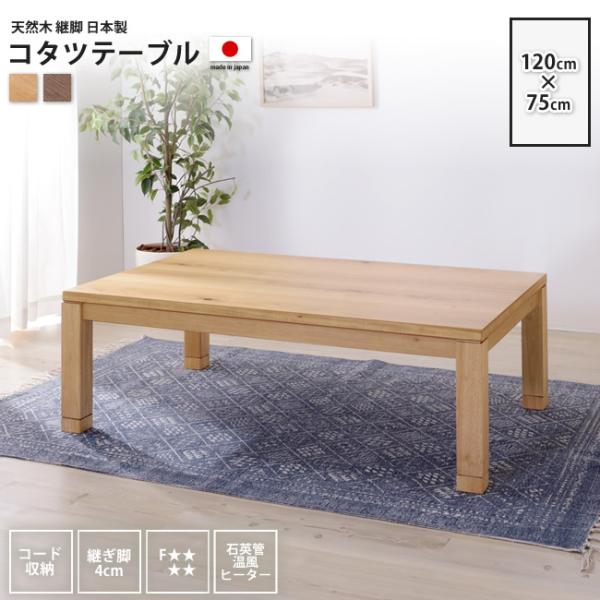 こたつテーブル W120 x D75 長方形 コタツテーブル こたつ おしゃれ 冬 炬燵 継脚 KTJ-120 BR/NA
